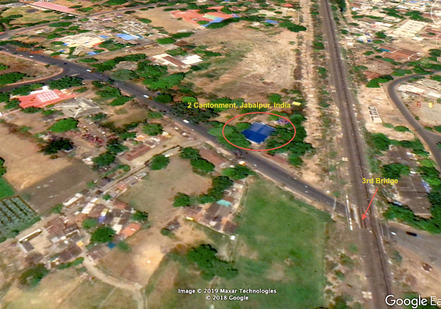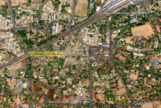 My mother’s family home can be found on Google Earth. It is recognized by the large roof of a 19th century bungalow, located just inside the periphery of what was, and still is Jabalpur Cantonment, a stone throw away from the landmark known as third bridge.