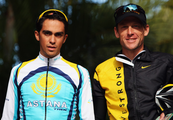 Alberto Contador and Lance Armstrong in happier times at the Team Astana training camp prior to the 2009 season. Twin sons of different mothers? Only history will tell, or will it? Photo © Bryn Lennon/Getty Images Europe